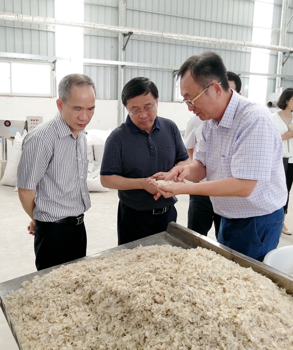 5月15日,碧桂園集團(tuán)副總裁、碧桂園農(nóng)業(yè)控股CEO梅永紅一行在湛江市政府和湛江市農(nóng)業(yè)局有關(guān)領(lǐng)導(dǎo)的陪同下到我集團(tuán)公司考察及洽談合作,王榮輝董事長(zhǎng)親自接待了梅永紅一行并陪同參觀了湛江工廠。在王榮輝董事長(zhǎng)的陪同下,梅永紅副總裁參觀了湛江工廠榮譽(yù)墻、蝦肽肥產(chǎn)品展示區(qū)、公司生產(chǎn)車間、產(chǎn)品包裝車間、蝦殼原材料存放區(qū)等。