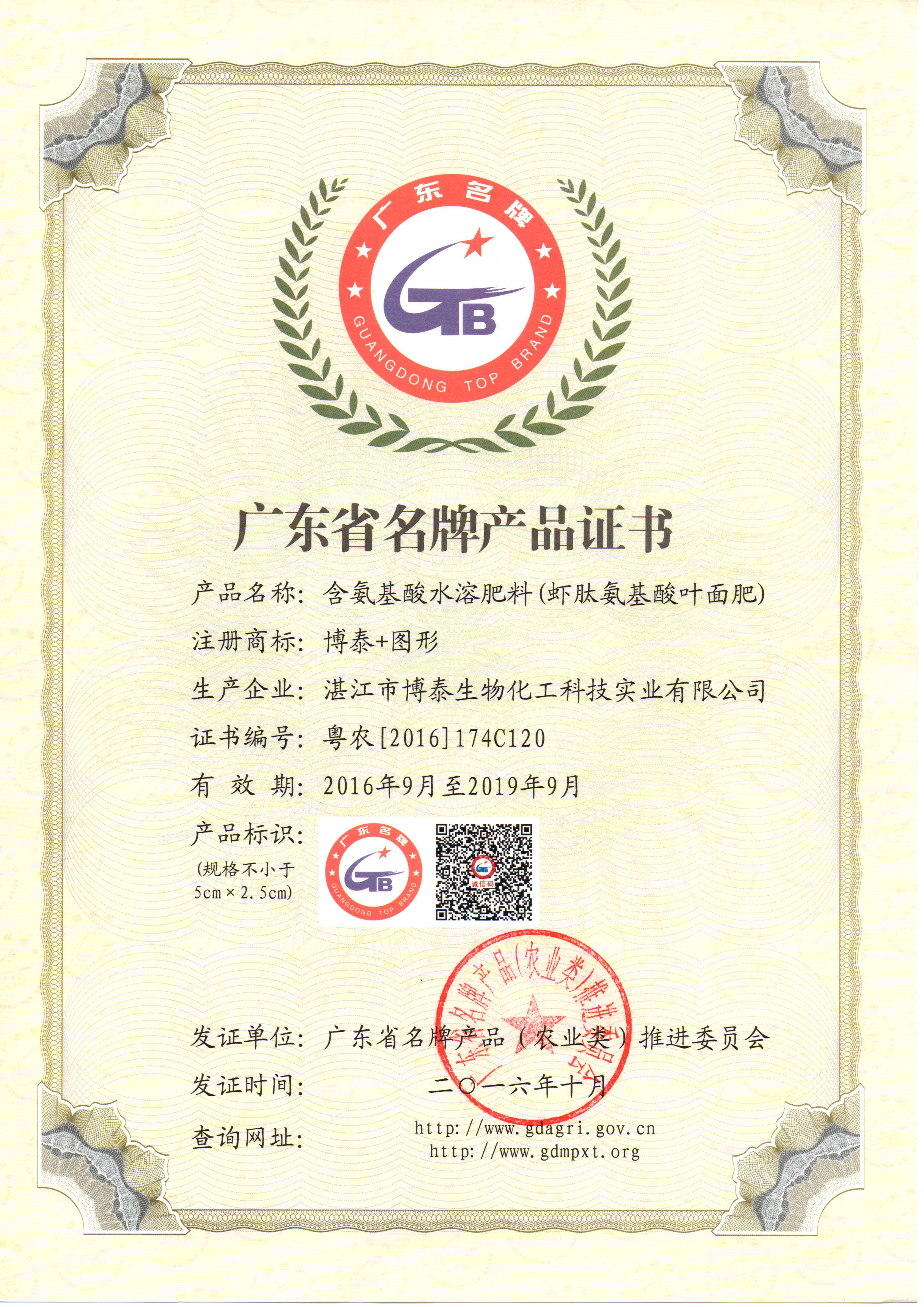廣東省名牌產品證書
